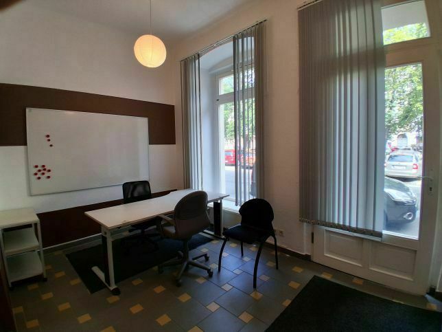 Im Gebäude sind im Erdgeschoss 3 kleine Büroeinheiten, jeweils mit separatem Eingang und Schaufenster vorhanden. Hier haben Sie das ideale Büro für Ihre Arbeit und für Ihre Kunden zu einem optimalen Preis in einer guten Innenstadtlage. Sie sind zu Fuß gut zu erreichen und Kunden haben vor der Tür ausreichend Parkplätze. Der eigene Ladeneingang und das große Schaufenster bietet Ihnen viele Werbemöglichkeiten.
